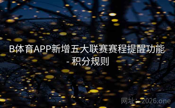 B体育APP的五大联赛赛程提醒功能,不仅仅是一个简单的通知工具,它结合了赛事分析、积分规则讲解和个性化提醒的多重优势,让球迷能够更智能地跟踪每一场比赛,深刻理解赛事背后的规则与变化。在未来,B体育APP将继续优化这一功能,通过不断创新来提升球迷的观赛体验,真正做到让每一位球迷都能够与比赛同步,享受更多精彩瞬间。