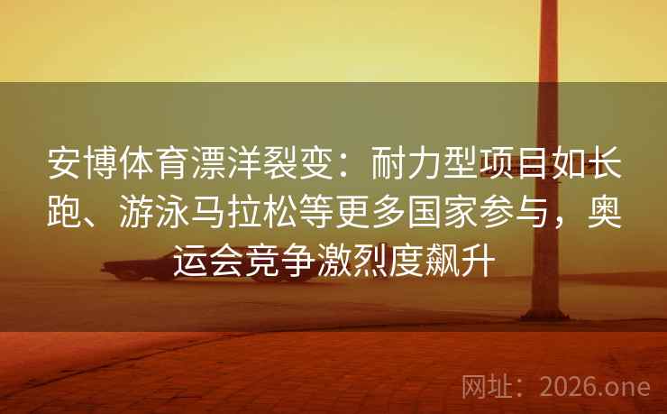 在现代体育的版图上,耐力型项目如长跑、游泳马拉松等,正以前所未有的速度“漂洋过海”,在全球范围内掀起一股热潮。这一现象的背后,离不开像安博体育这样致力于体育全球化的企业推动。安博体育通过其专业的平台和资源,不仅将这些耐力型项目带向更多国家,还为这些国家的运动员提供了参与国际赛事的机会,极大地提升了奥运会的竞争激烈度。